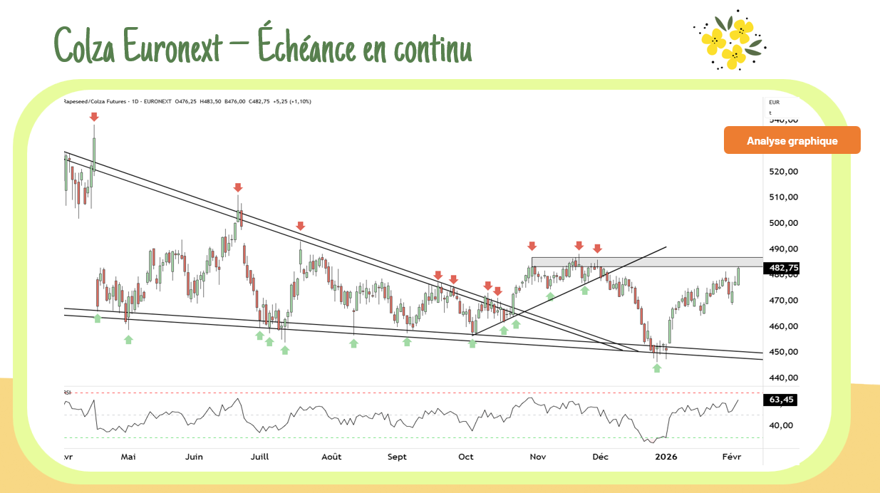 Les cours du blé R25 reviennent sur les plus hauts de novembre 2025. Les cours continuent d’être alimentés par la hausse du soja et du canola canadien. Cependant, la situation semble être instable sur le plan commercial !