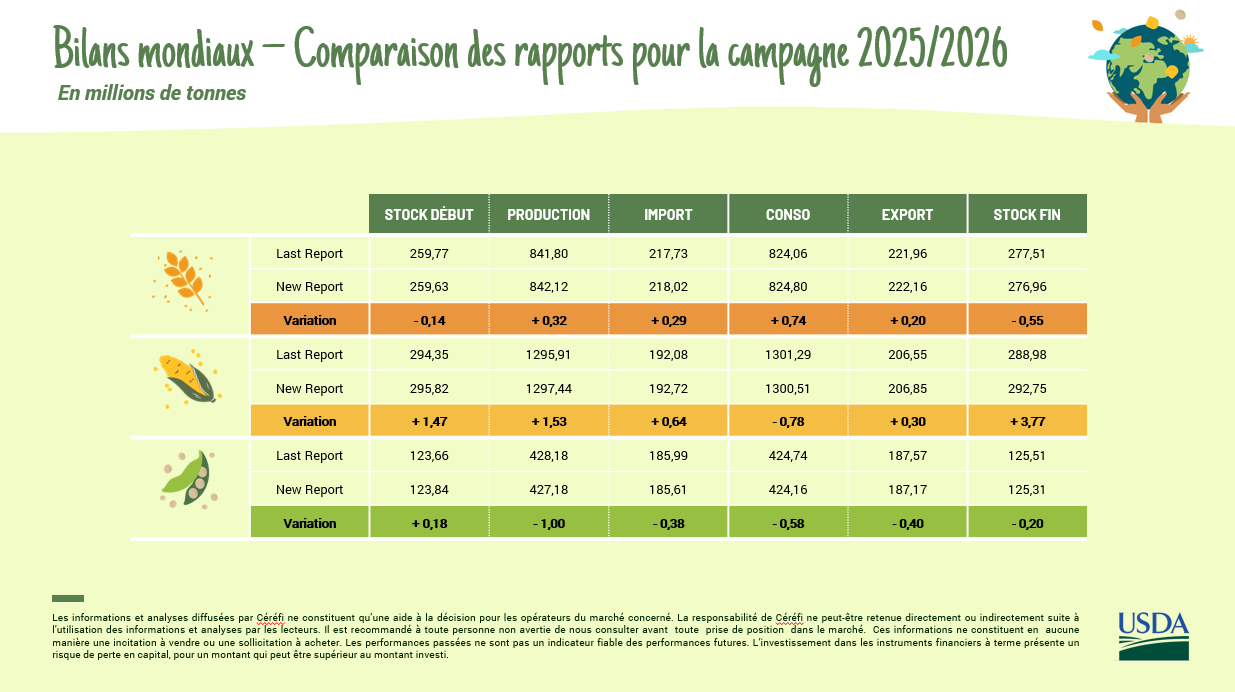 Dans la continuité de l’an dernier, ce rapport USDA surprend une nouvelle fois. Alors que la production de blé et de maïs évoluait déjà sur des niveaux records (et de loin) les analystes ont, une fois encore, revu à la hausse les estimations de production pour ces deux cultures.