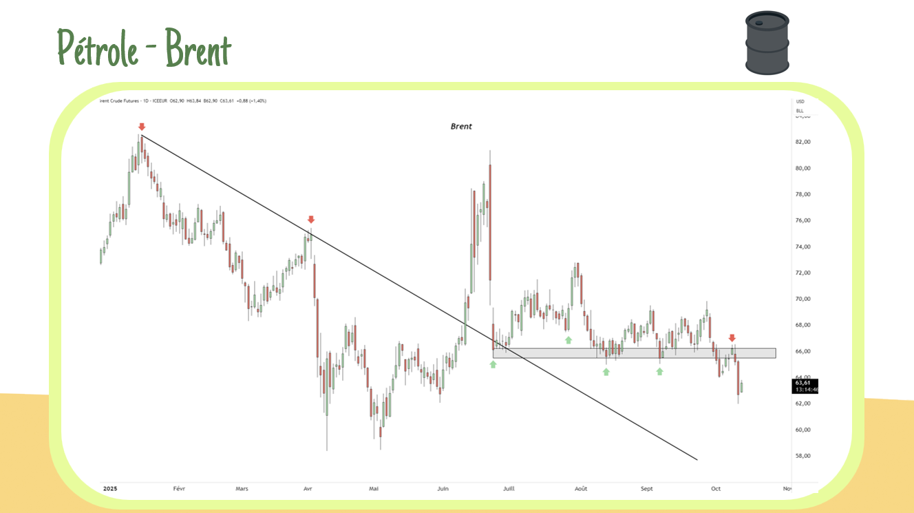 Vendredi Trump menace 100% de taxes sur les terres rares chinoises → tech plonge. Le soir, adoucissement, sommet maintenu. Lundi : “Nous verrons”. -> Résultat : S&P -3,9%, Brent -5%, Bitcoin -14% avant les reprises. | Gains rapides = pertes rapides.