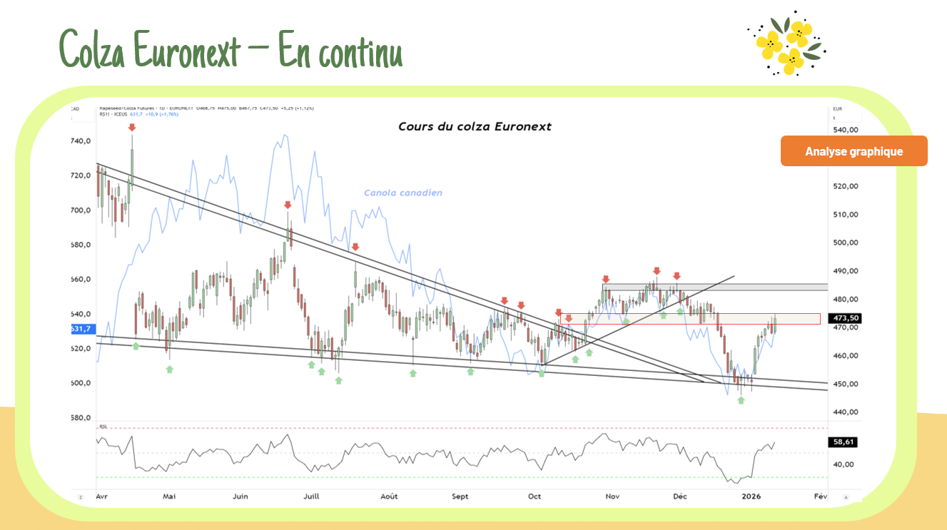L’arrivée de Mark Carney à Pékin aujourd’hui a ravivé l’espoir sur les marchés, apportant un soutien aux cours. Vendredi, il doit rencontrer Xi Jinping. L’objectif principal de cette visite est de relancer les exportations de canola, notamment via une possible levée des droits de douane punitifs.